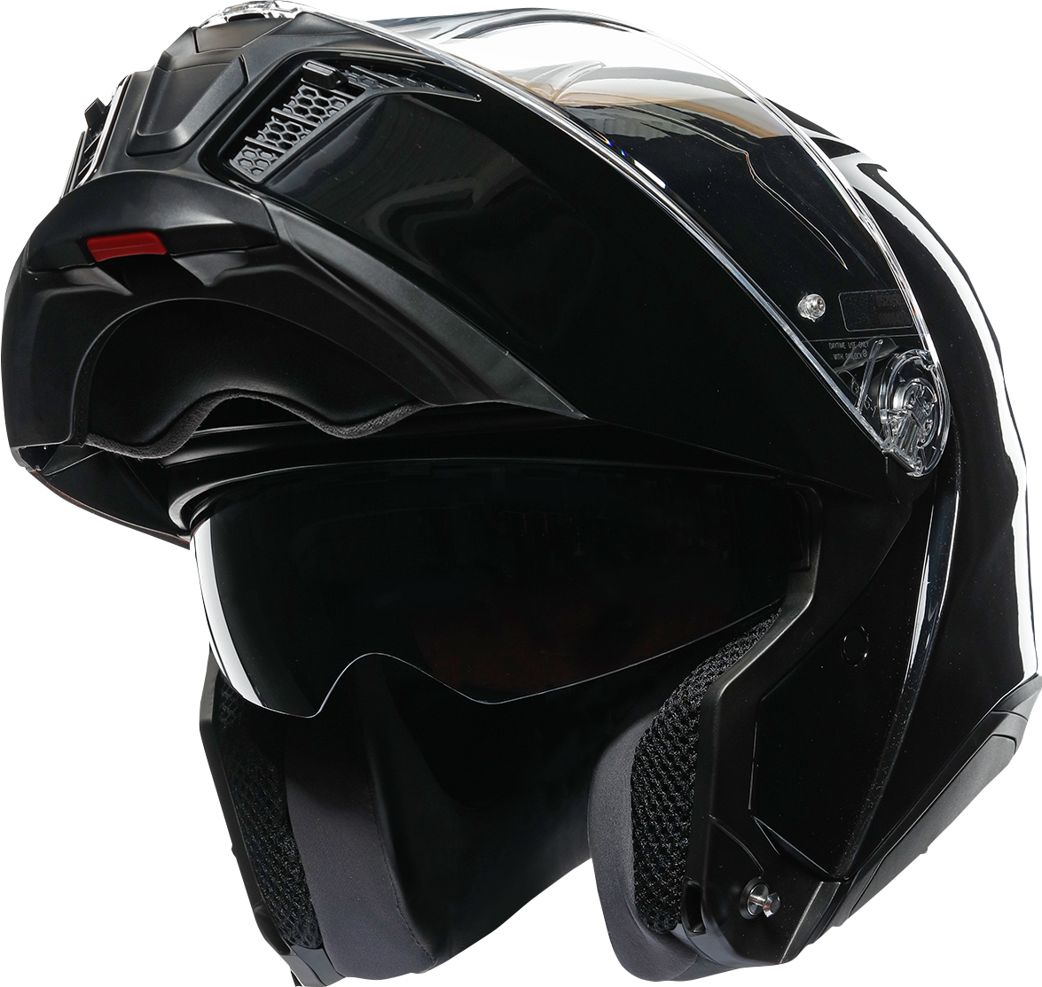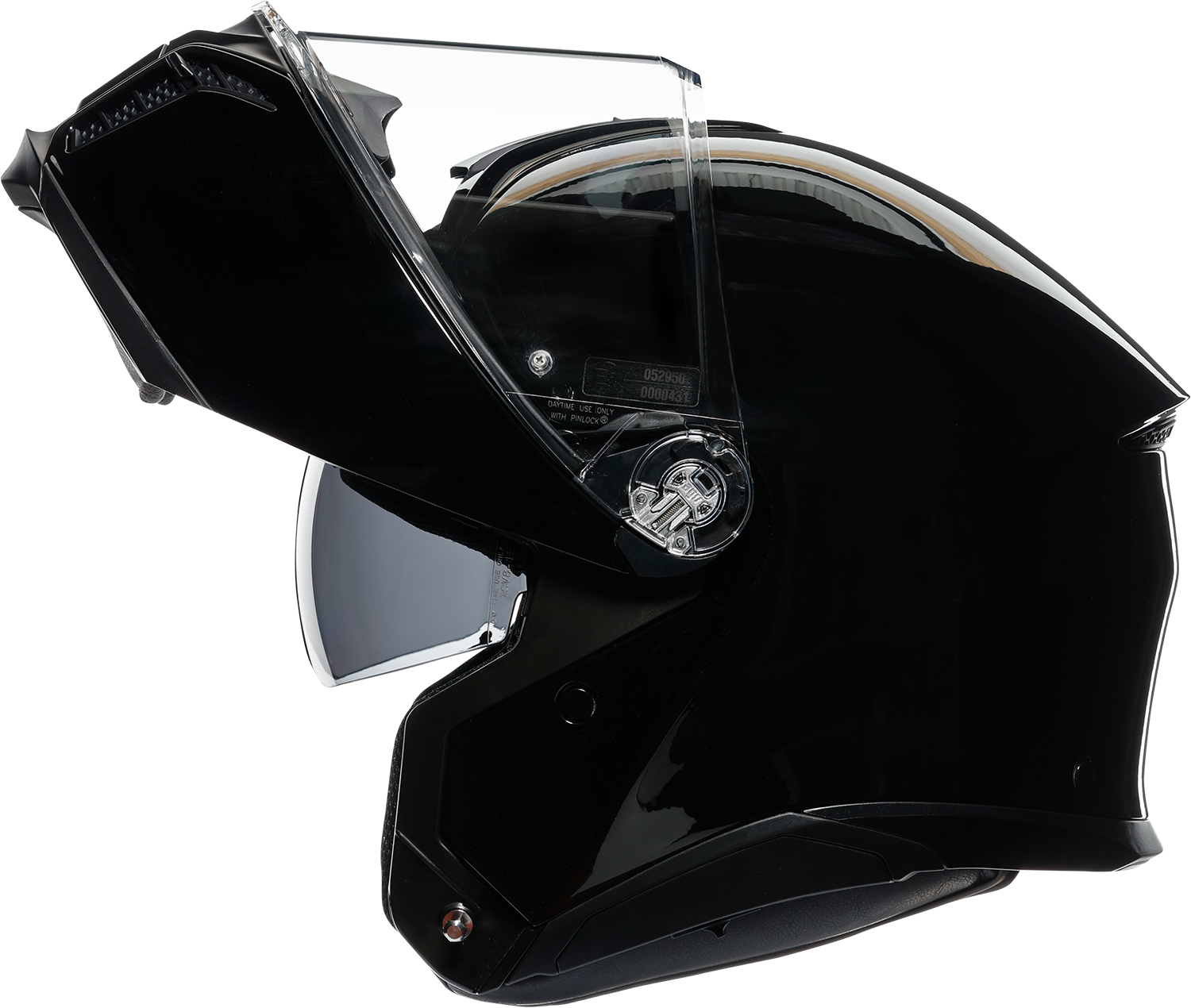 Chin guard opening system designed to prevent accidental opening, Shell shape designed to maximize aerodynamic performance and to have 0 dynamic weight at 80 mph (130 km/h), 5-density EPS Carbon-aramid-fiberglass shell, Collarbone safe profile, Metal chin guard block system ensures the double homologation P/J, Ventilation — 4 front vents, adjustable air vents and 1 rear extractors, 2-step chin guard mechanism designed to optimize aerodynamics in jet configuration, Removable and washable interiors, Ritmo fabric, fresh and fluid cheek pads, Removable wind protector, Removable nose guard, Shalimar fabric crown pad for a soft and gentle touch, Reflective inserts, Fit especially designed to allow wearing glasses, Sanitized, antibacterial protection, 2Dry instant sweat absorption, Embracing neck roll profile, Ritmo fabric and synthetic leather neck roll with high abrasion resistance and water-resistant properties, Microsense premium skin comfort interior, Ready for AGV INSYDE communication system, Cheek pads interchangeable between all sizes, Micro-opening system, Anti-scratch, optic class 1 visor with a 85° vertical field of view and a 190° horizontal field of view, Integrated anti-scratch sun visor, removable without using tools