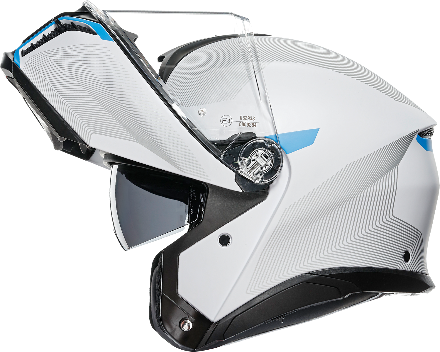 5-density EPS Carbon-aramid-fiberglass shell, Collarbone safe profile, Chin guard opening system designed to prevent accidental opening, Metal chin guard block system ensures the double homologation P/J, Shell shape designed to maximize aerodynamic performance and to have 0 dynamic weight at 80 mph (130 km/h), Ventilation — 4 front vents, adjustable air vents and 1 rear extractors, 2-step chin guard mechanism designed to optimize aerodynamics in jet configuration, Removable and washable interiors, Removable nose guard, Ritmo fabric, fresh and fluid cheek pads, Removable wind protector, Shalimar fabric crown pad for a soft and gentle touch, 2Dry instant sweat absorption, Reflective inserts, Fit especially designed to allow wearing glasses, Sanitized, antibacterial protection, Microsense premium skin comfort interior, Embracing neck roll profile, Ritmo fabric and synthetic leather neck roll with high abrasion resistance and water-resistant properties, Cheek pads interchangeable between all sizes, Anti-scratch, optic class 1 visor with a 85° vertical field of view and a 190° horizontal field of view, Ready for AGV INSYDE communication system, Micro-opening system, Extra quick release system
