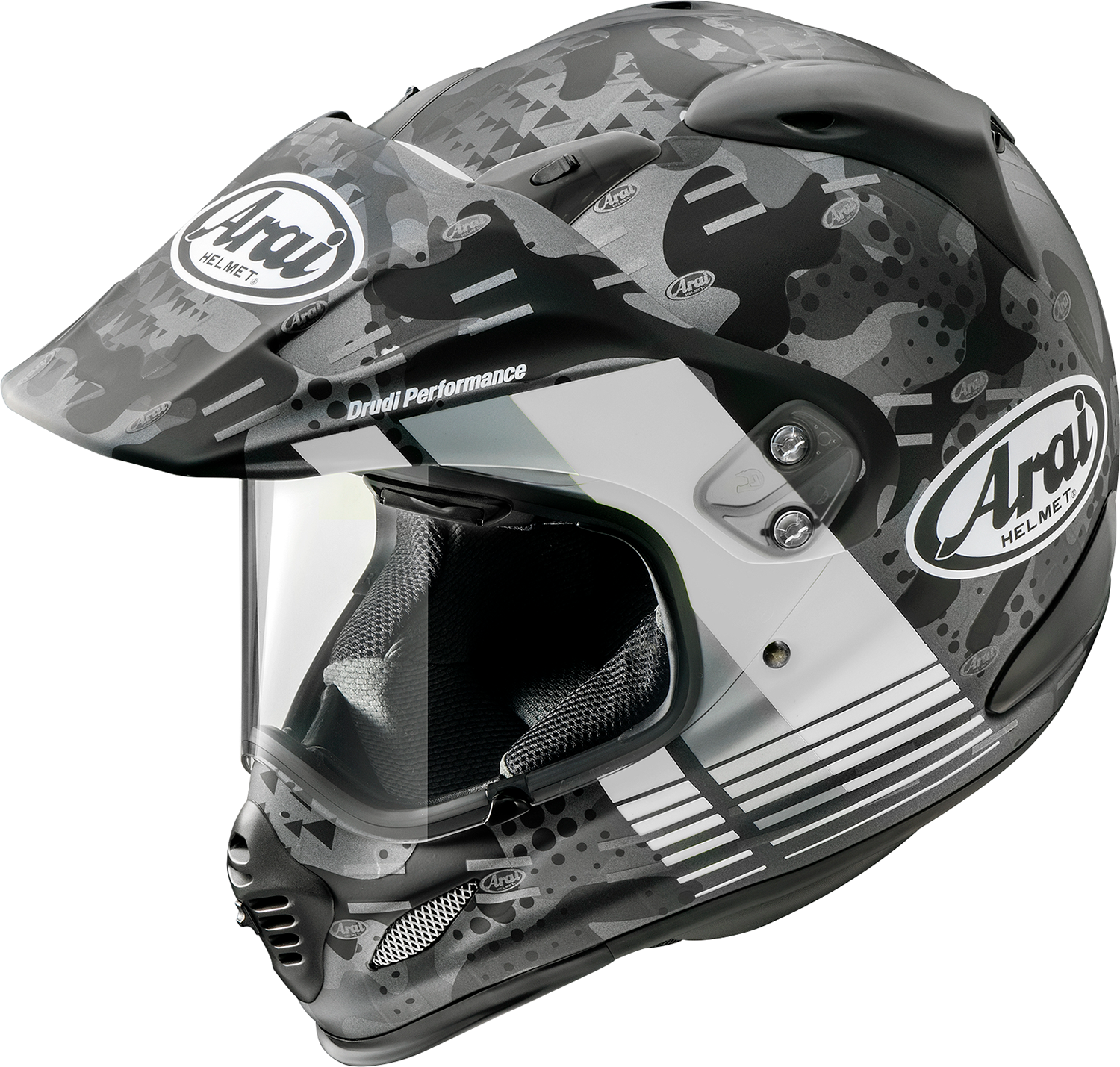 Features intermediate oval shape which fits the majority of head shapes in the North American markets, Offers three distinct configurations depending on rider preference or riding conditions; change the look every time you ride — or even during the same ride, FCS® cheek pads design delivers comfort and support and features 5 mm peel-away custom-fit layer, Peel-away side/temple crown pads give the option of 10 mm more interior width if needed, Fully removable, replaceable and washable interior that keeps you drier and cooler for greater long-haul comfort, High-flow peak reduces drag at highway speeds and helps direct air into upper intake vents for improved internal ventilation, Larger, sculpted vents improve ventilation efficiency as well as helmet stability on your head at speed, Chin vent has more intake ports for improved airflow, Brow vents in faceshield provide airflow to the temple area of the head, Using the eyeport to improve ventilation, avoiding additional holes in the critical forehead, the brow vent in the faceshield improves rider comfort while maintaining shell integrity and impact energy management performance, Emergency cheek pads release system developed to allow easier access to an injured rider via integrated pull-tabs built into the underside of the cheek pad, 2023 Arai Brochure