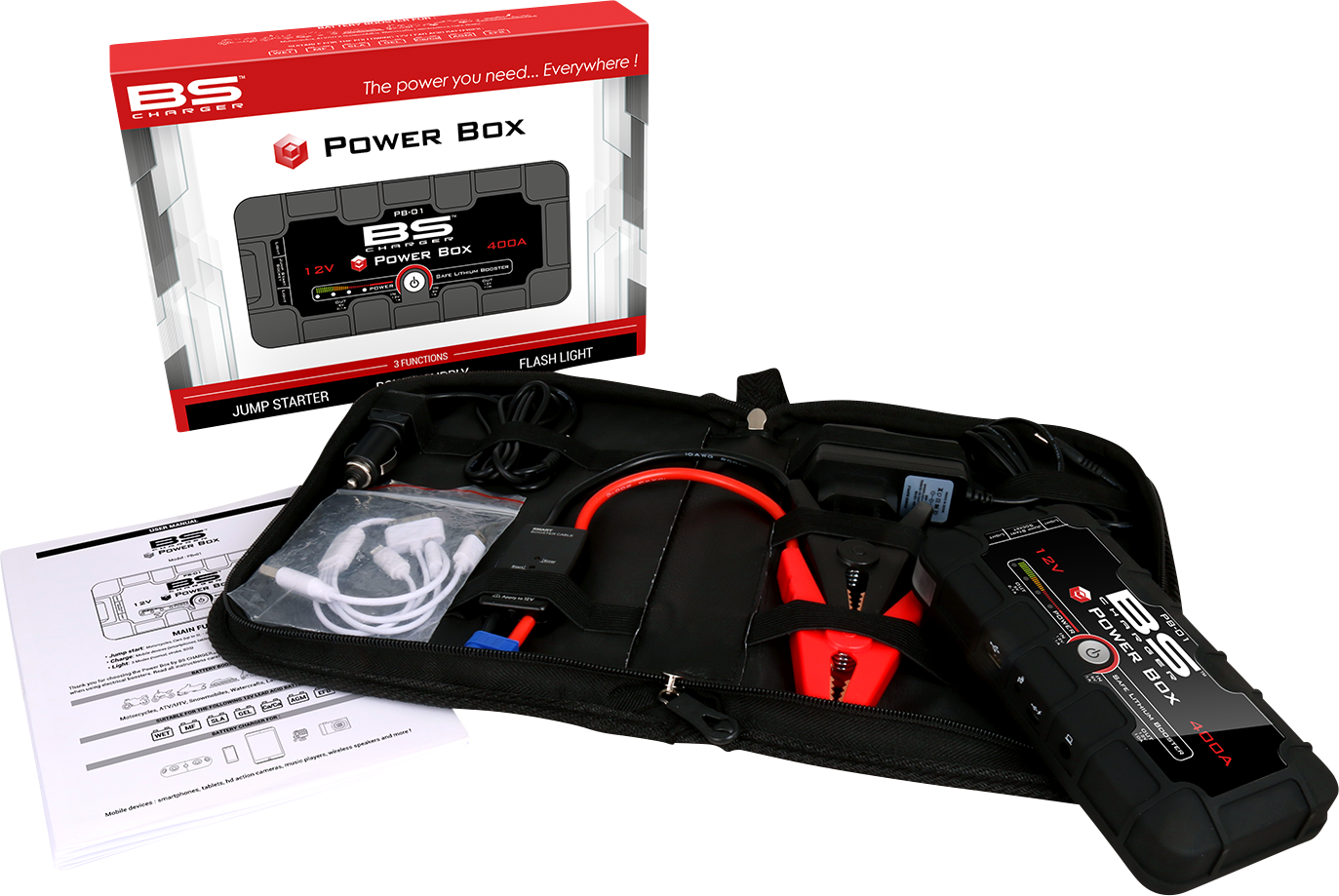 Very safe: smart cable with spark-proof connection and reverse polarity protection, USB output 5V 2.1A for mobile devices and output 12V 10A for vehicle products, Compact and powerful lithium booster rated at 200A (400A peak current), LED flashlight function with 3 modes, Designed for gas and diesel engines, Up to 20 jump starts in one charge, Power supply for all USB devices
