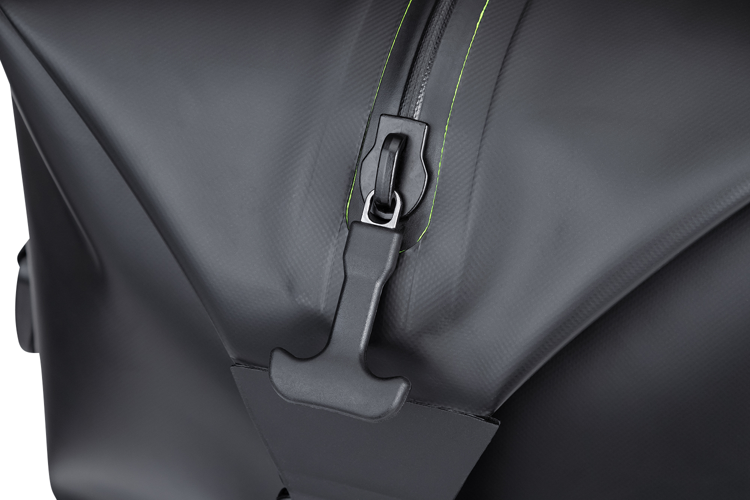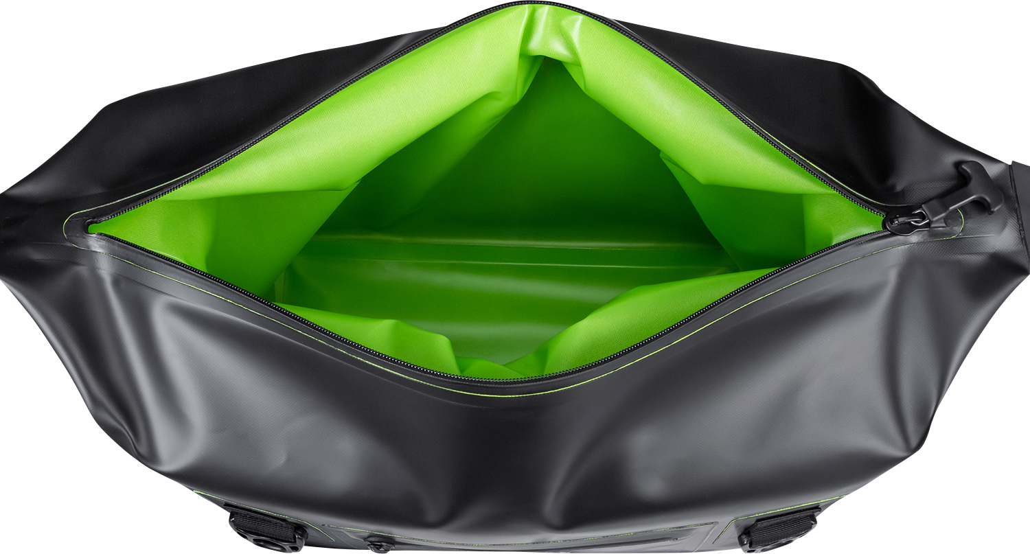 Insulated waterproof interior , Semi-rigid bottom , Custom 840D Nylon TPU laminate, Adjustable shoulder strap doubles as an under seat tie down strap , Front and back pockets , Welded seams , 4 Heavy-duty D rings , Adjustable loops for quick mounting , YKK zippers with T-handle pulls, Reflective Ciro logo , Holds 32 12 oz. Cans (EU: 354,88 ml), Universal fit, recommended for luggage rack or passenger seat