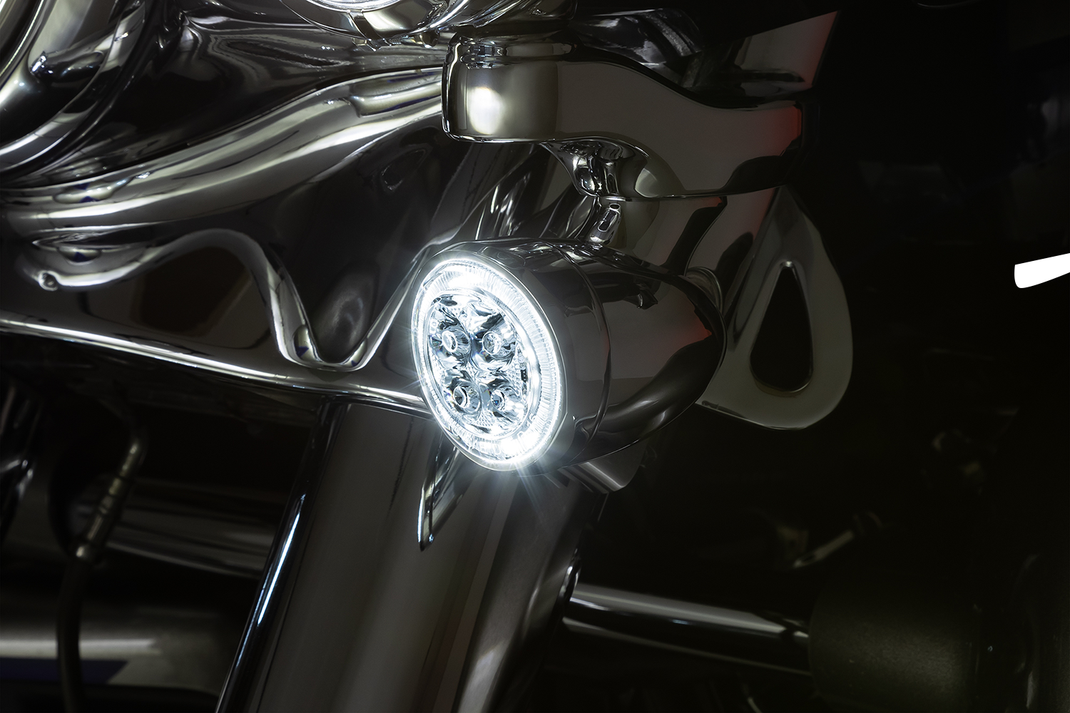 Optical grade polycarbonate lens has scientifically engineered optics for maximum light transfer and increased visibility, The visor has a unique modern design for great style that complements any motorcycle, High intensity white running light provides a distinctive halo effect for increased visibility and style, DOT approved high intensity amber turn signal for improved visibility, Plug and play