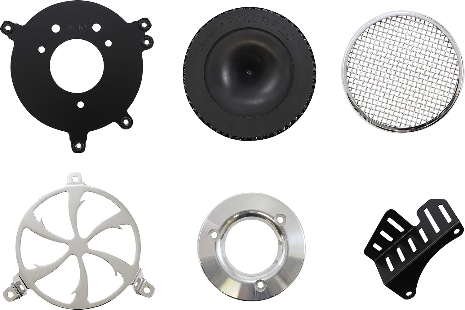 The Cobra system consists of a laser-cut, formed steel cover, separate mounting ring, and all the fasteners, seals, backing plate and mounting hardware for easy installation, Flows better than stock or competing units, in large part because of its unique internal venturi design of the inner filter, Slim profile keeps the unit away from the rider’s leg, Formed stainless steel mesh insert, Optimizes overall performance, Made in the U.S.A.