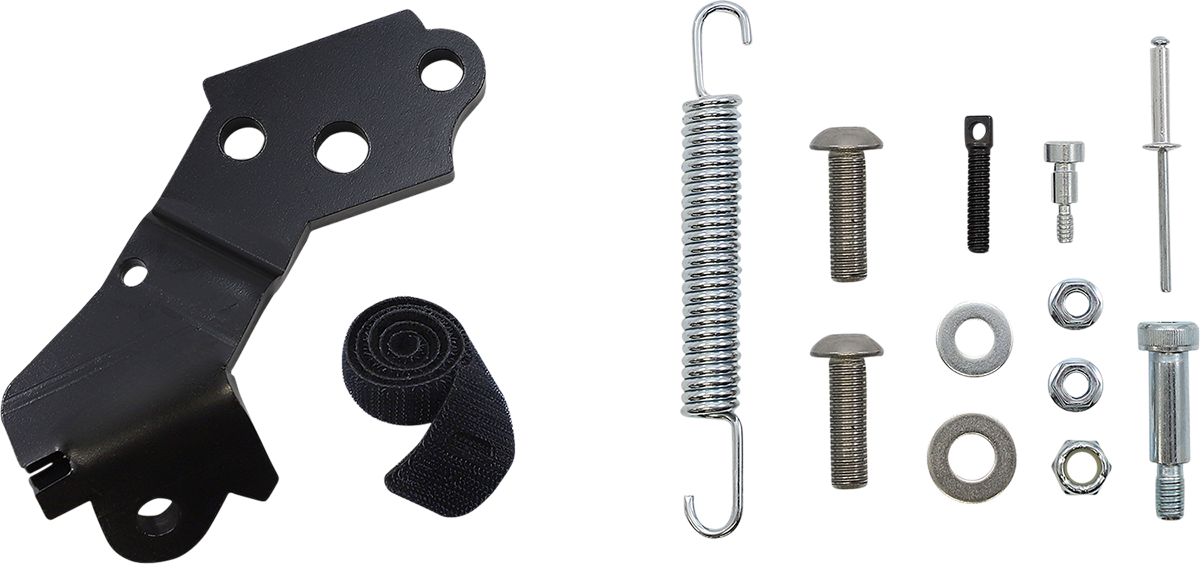 Tapered Aluminum shaft, Heavy Guage steel mount bracket for superior strength, All installation hardware included, Includes safety strap, Does not interfere with your foot while riding