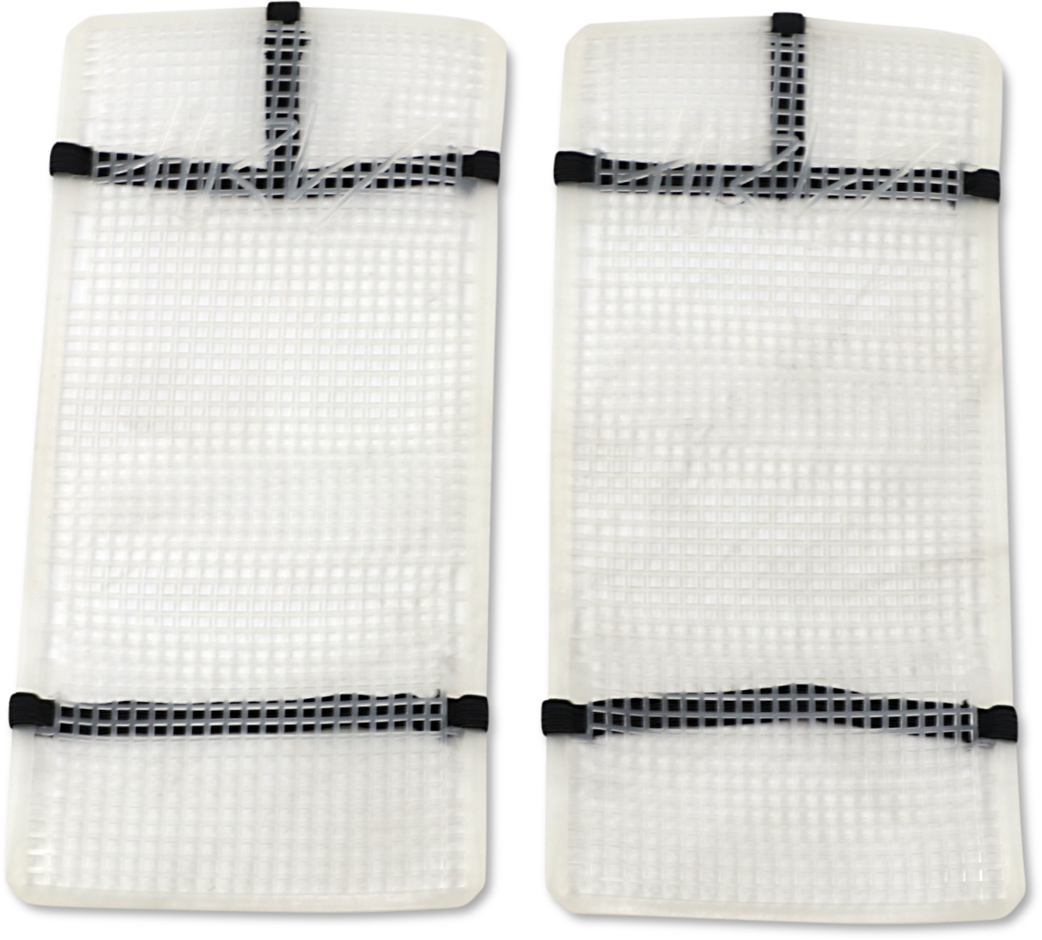 Designed to protect your radiator from clogging up with mud in inclement conditions, Easy to install with elastic straps that wrap around the radiator core housing, Made of silicone so that mud will not stick to radiator causing restriction of air into cooling fins