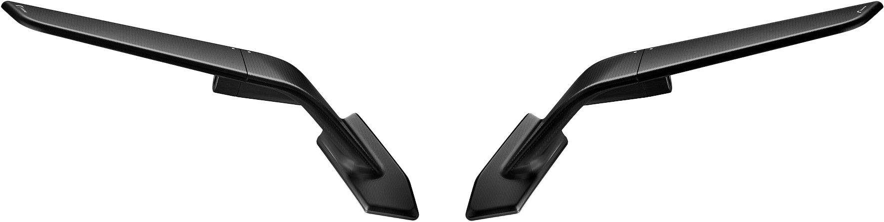 - Thanks to a rotating system, by a simple movement, the two parts are aligned in a closed position and the mirror becomes an aerodynamic foil