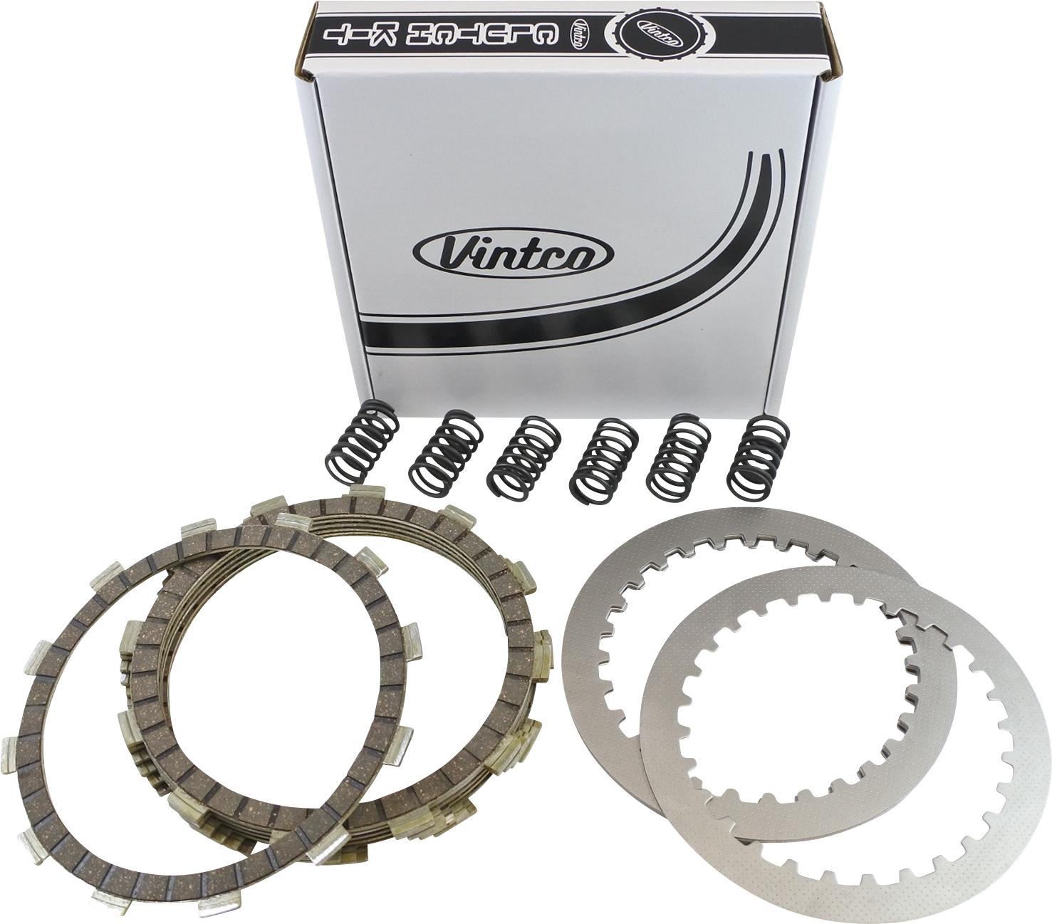 VintCo clutch kits will save you time and money as they come complete with steel and friction plates, along with the springs to complete the job with ease, Made with modern materials and manufacturing techniques to ensure an as good or better than OEM fitment and performance, Cork friction plates are infused with aluminum particles designed to ensure smooth power delivery and fade free performance, Clutch plates made of steel, Steel plates won't expand and do not fade like aluminum plates, Clutch springs are heat treated for maximum life, Maico sintered bronze plates does not include steel plates (all Maicos).