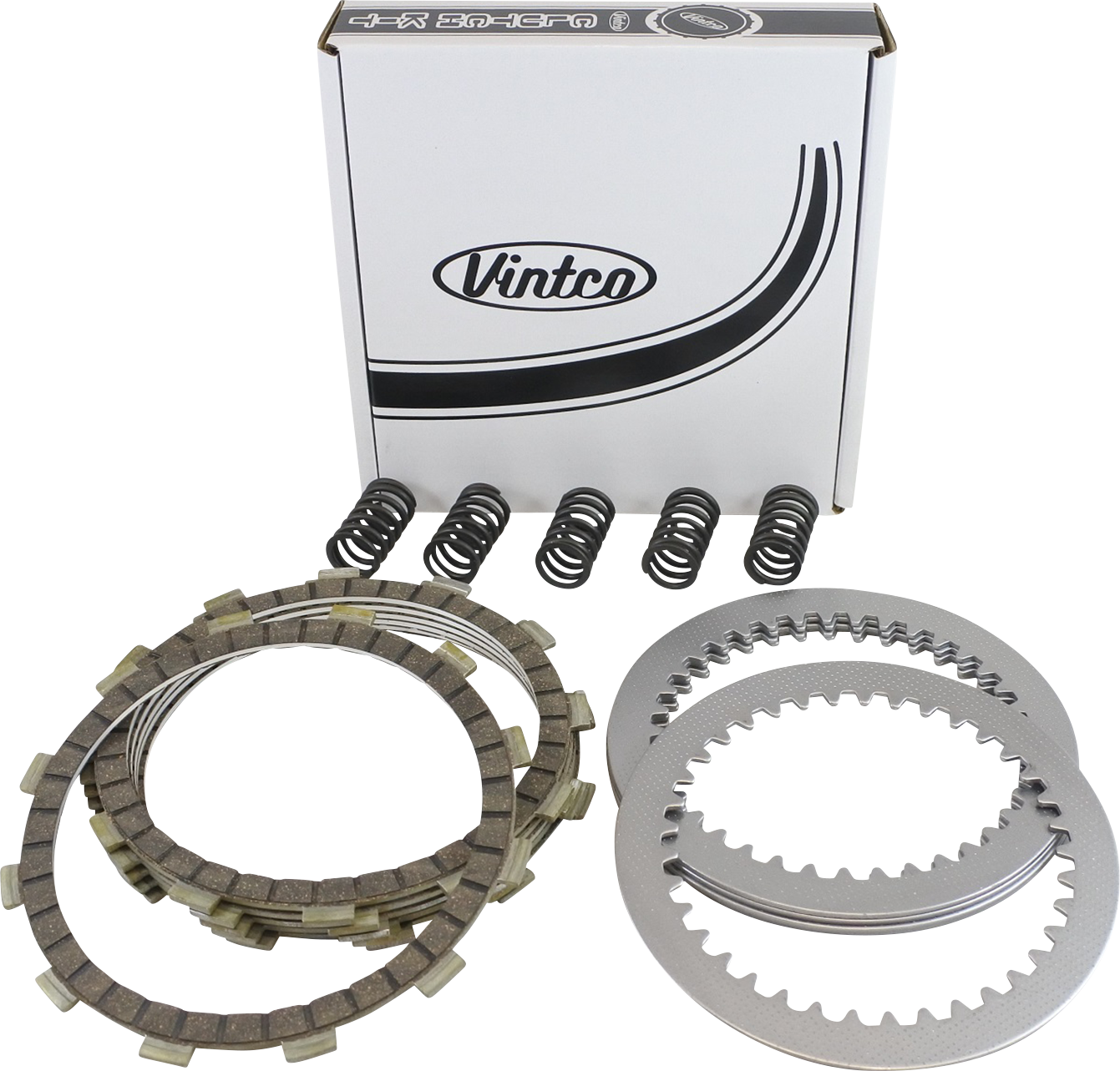 VintCo clutch kits will save you time and money as they come complete with steel and friction plates, along with the springs to complete the job with ease, Made with modern materials and manufacturing techniques to ensure an as good or better than OEM fitment and performance, Cork friction plates are infused with aluminum particles designed to ensure smooth power delivery and fade free performance, Clutch plates made of steel, Steel plates won't expand and do not fade like aluminum plates, Clutch springs are heat treated for maximum life, Maico sintered bronze plates does not include steel plates (all Maicos).