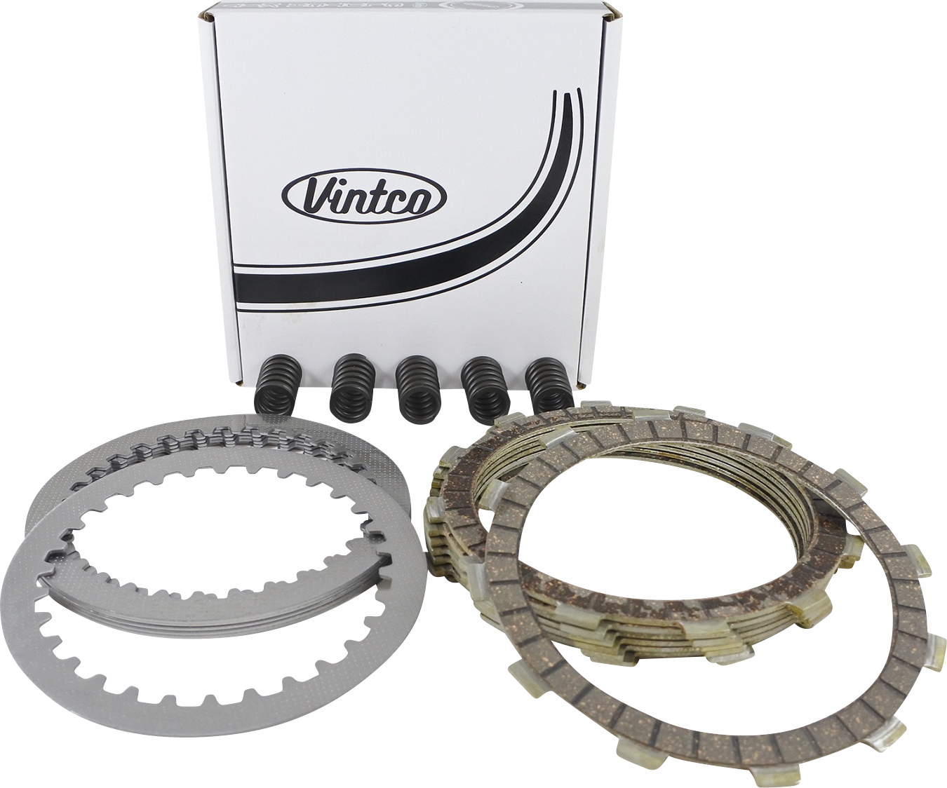 VintCo clutch kits will save you time and money as they come complete with steel and friction plates, along with the springs to complete the job with ease, Made with modern materials and manufacturing techniques to ensure an as good or better than OEM fitment and performance, Cork friction plates are infused with aluminum particles designed to ensure smooth power delivery and fade free performance, Clutch plates made of steel, Steel plates won't expand and do not fade like aluminum plates, Clutch springs are heat treated for maximum life, Maico sintered bronze plates does not include steel plates (all Maicos).