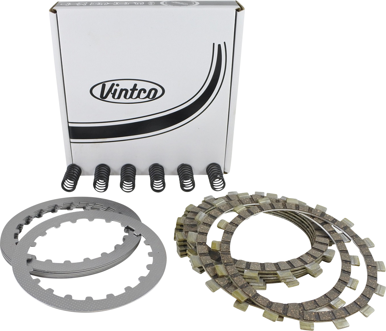 VintCo clutch kits will save you time and money as they come complete with steel and friction plates, along with the springs to complete the job with ease, Made with modern materials and manufacturing techniques to ensure an as good or better than OEM fitment and performance, Cork friction plates are infused with aluminum particles designed to ensure smooth power delivery and fade free performance, Clutch plates made of steel, Steel plates won't expand and do not fade like aluminum plates, Clutch springs are heat treated for maximum life, Maico sintered bronze plates does not include steel plates (all Maicos).