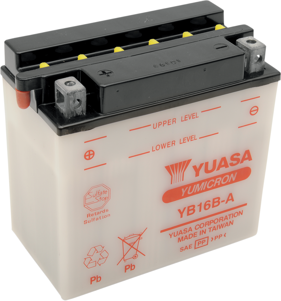 Yuasa's Yumicron CX lead/calcium battery has 5% to 8% more cranking power than the high-output Yumicron and requires minimal servicing, All batteries are shipped dry
